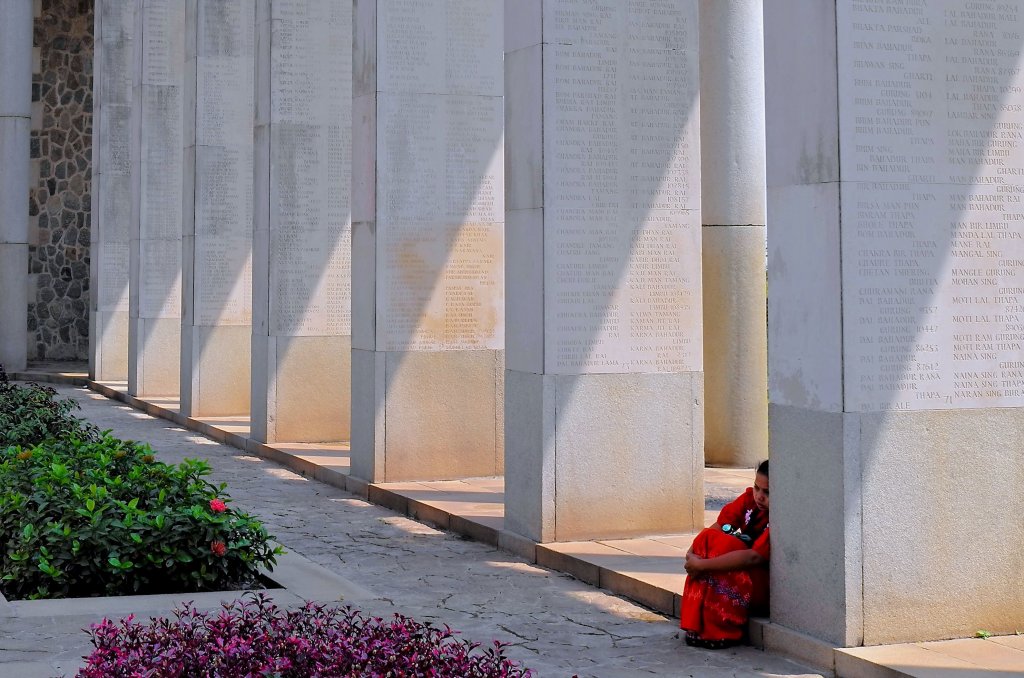 The architecture is modern and monumental, with many places where the light leaves a deep shadow and provides a good final resting place for these soldiers.